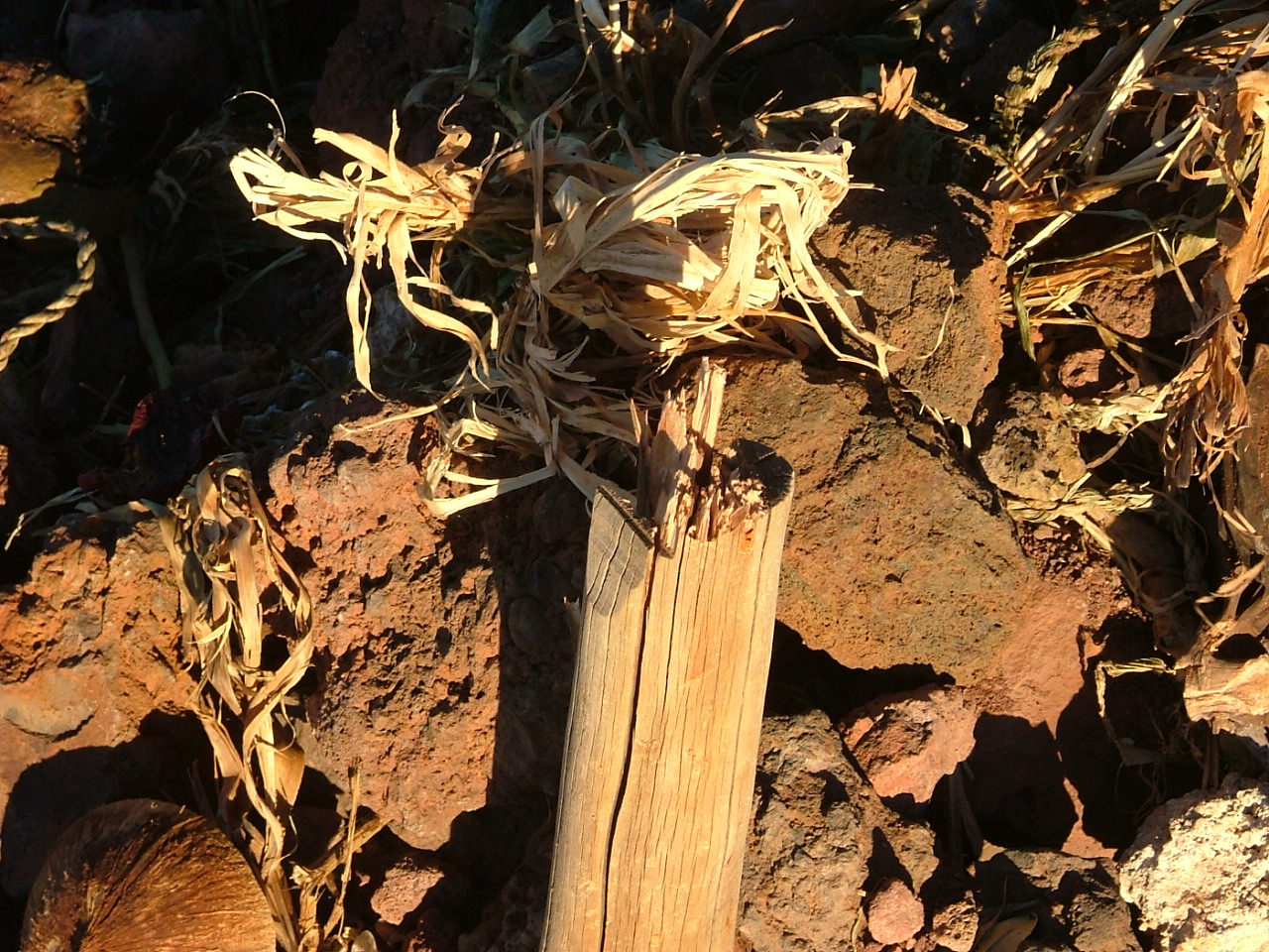 It has been destroyed and all the offerings scattered all over the place many times (including the time the legs of the platform were hacked down with an axe). I think five times now. In one incident the rock platform that was created below the lele was completely destroyed with all of the rocks being literally thrown down the back face of the pu`u. What was desecrated also, where the personal effects of some Hawaiian solders that died in the Iraq war had been placed inside the rock plate form by their fathers. Uncle Kū (Clarence Kūkauakahi Ching) had been asked by their fathers to help them do this to honor their sons. (See Exhibits C-8 and C-9, examples of lele destruction).
